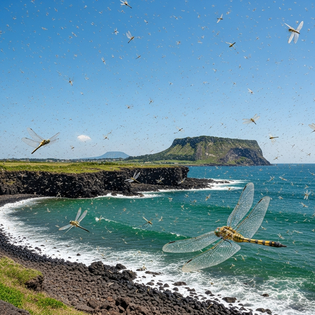 마치 영화의 한 장면처럼, 수천, 수만 마리의 잠자리 떼가 제주도의 푸른 앞바다와 하늘을 뒤덮는 경이로우면서도 기이한 현상이 포착되었습니다. 한여름의 아름다운 풍경으로만 보기에는 그 규모가 너무나 이례적이어서, 전문가들은 이것이 '기후변화'가 우리에게 보내는 또 하나의 강력한 경고 신호일 수 있다고 지적하고 있습니다.
